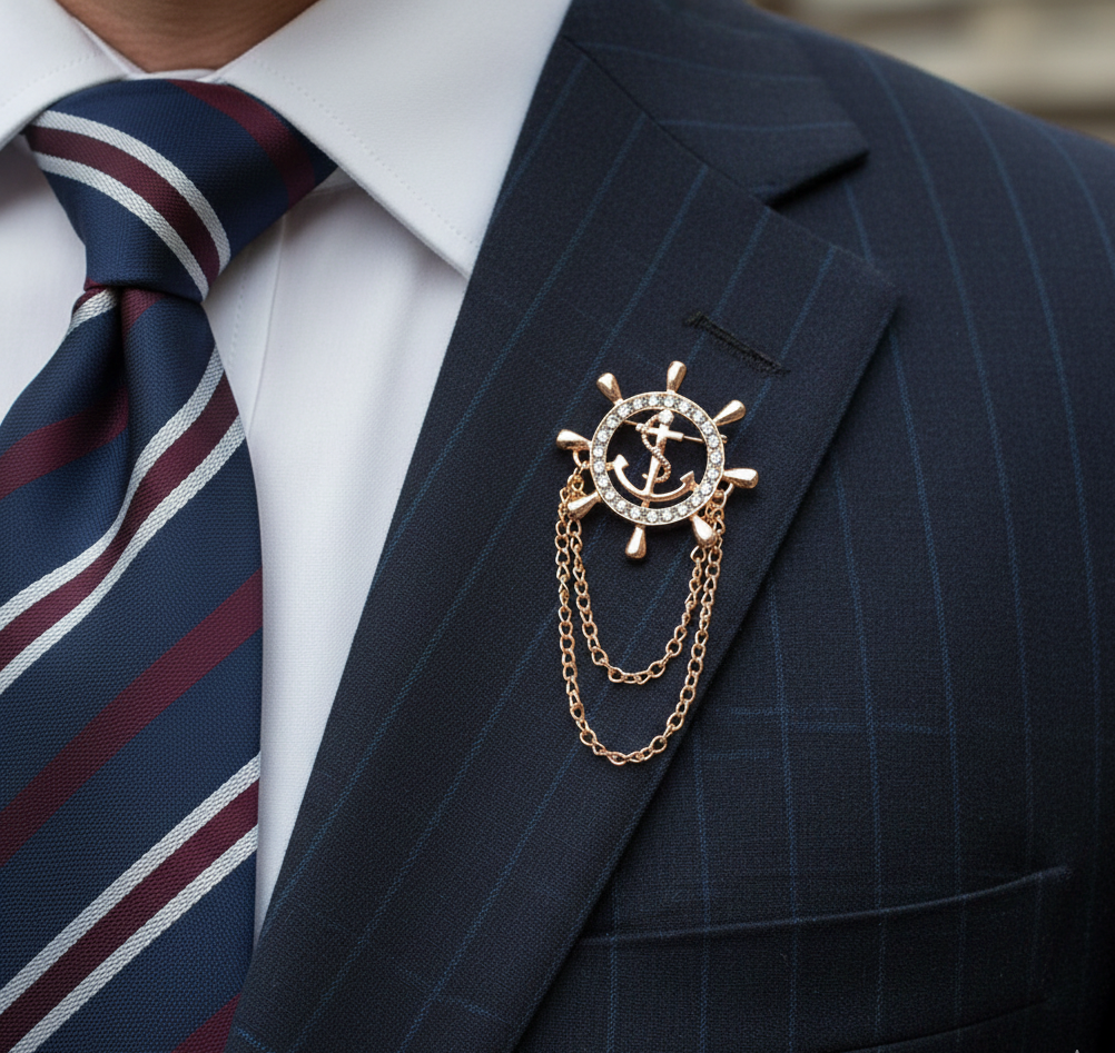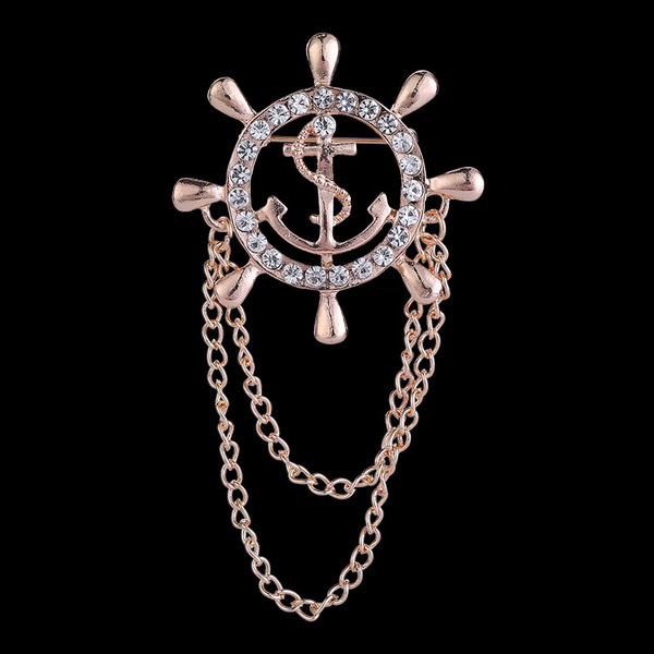 Men’s Rudder Rhinestone Rose-gold Anchor Brooch/ Suit Accessories ST-2201